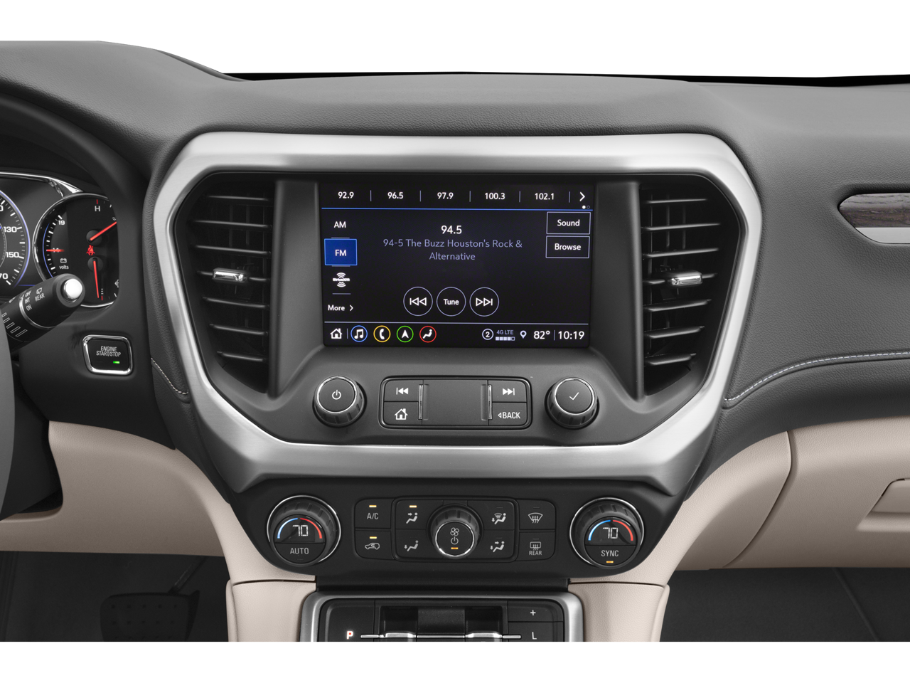 - 8" diagonal GMC Infotainment System with Navigation, includes multi-touch display, AM/FM/SiriusXM1 radio